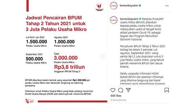 Jun 15, 2021 · program bpum 2021 kembali menyasar pelaku umkm untuk diberikan bantuan langsung tunai (blt) sebesar rp1,2 juta.